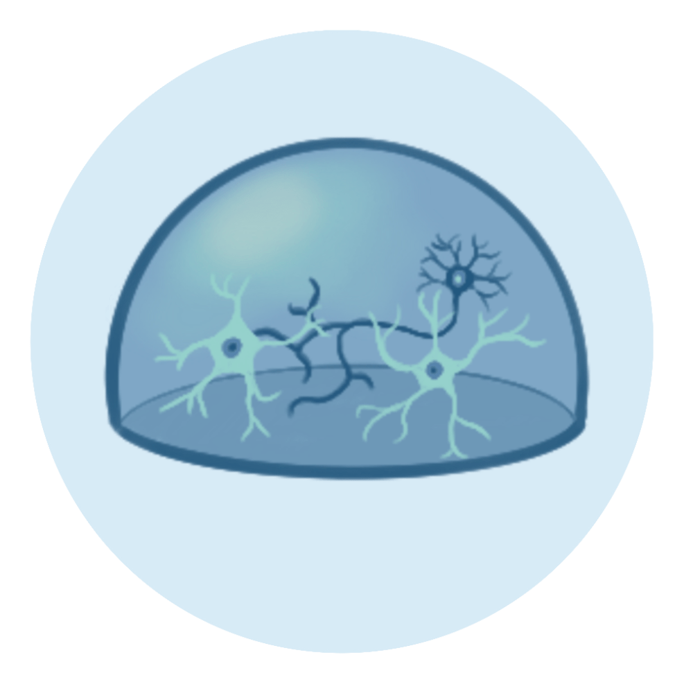 With novel reprogramming methods that we apply to human skin cells, we can generate in the laboratory various cell types of the human brain. We are currently developing advanced cellular models that combine culture of multiple cell types in 3D hydrogel matrices to try to best mimic – in a dish – how cells behave in the human brain.